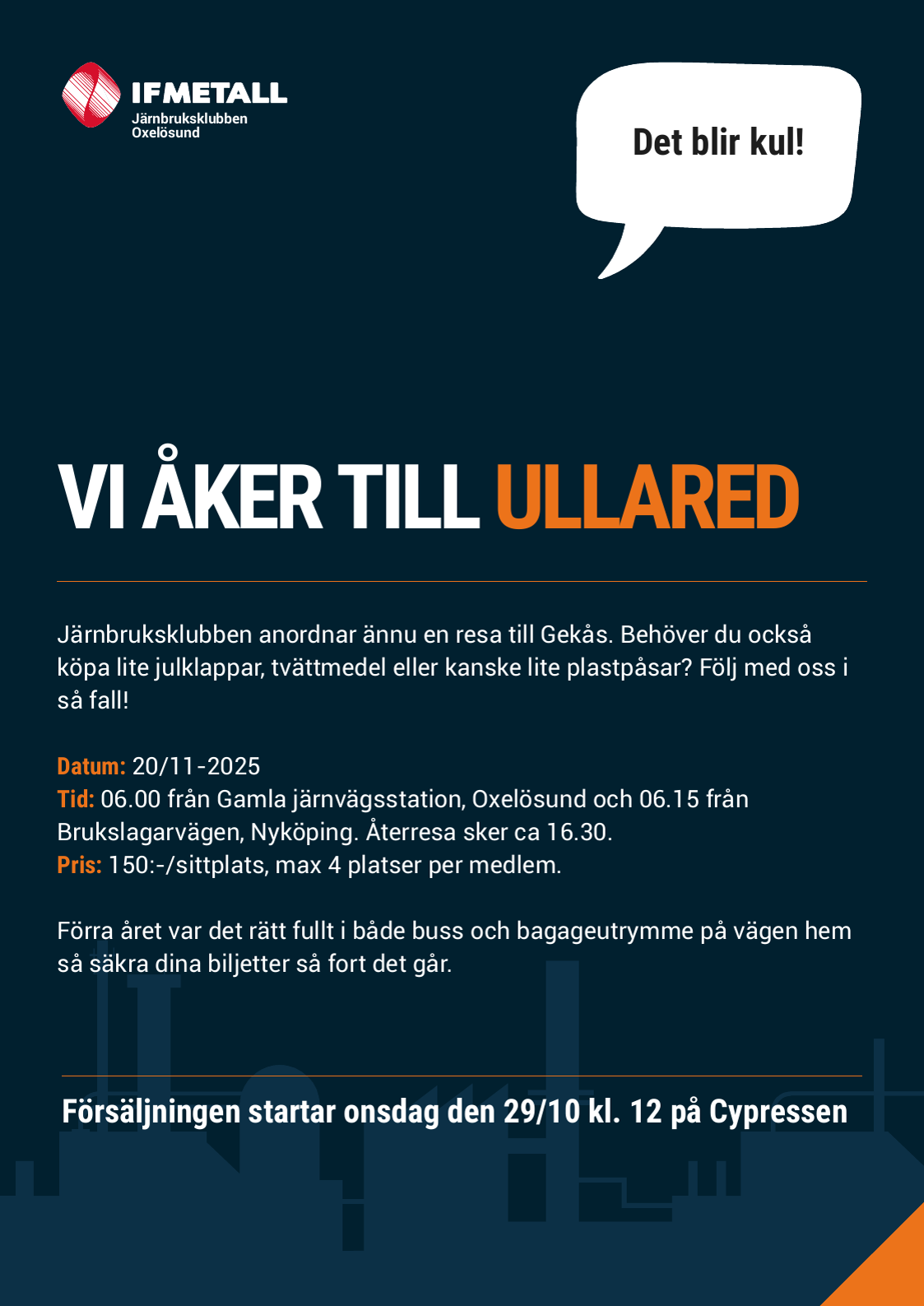 Järnbruksklubben är aktiv på SSAB i Oxelösund och har cirka 1550 medlemmar. Idén med vår förening är att vi ska förbättra våra villkor på arbetsplatsen och i samhället, och att alla ska ha rätt till ett bra och tryggt arbete. Genom att vi är många ökar våra möjligheter att förbättra våra villkor.
